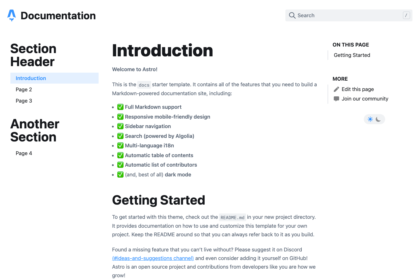 Astro CLI documentation starter