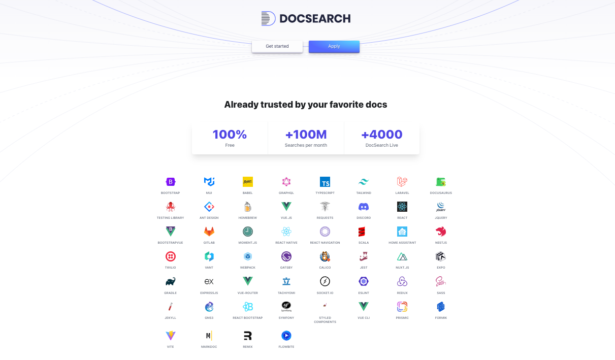 Docsearch is free for open source projects